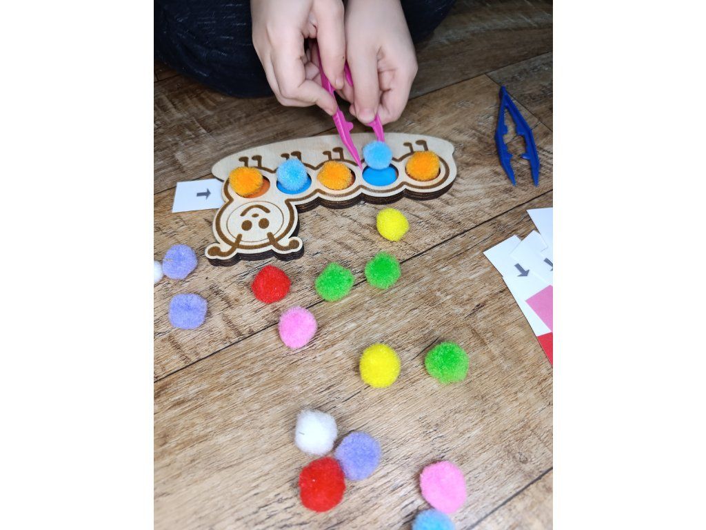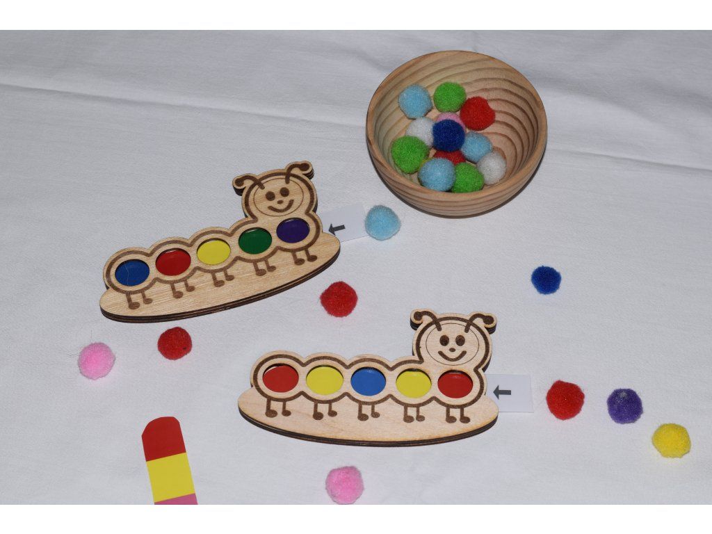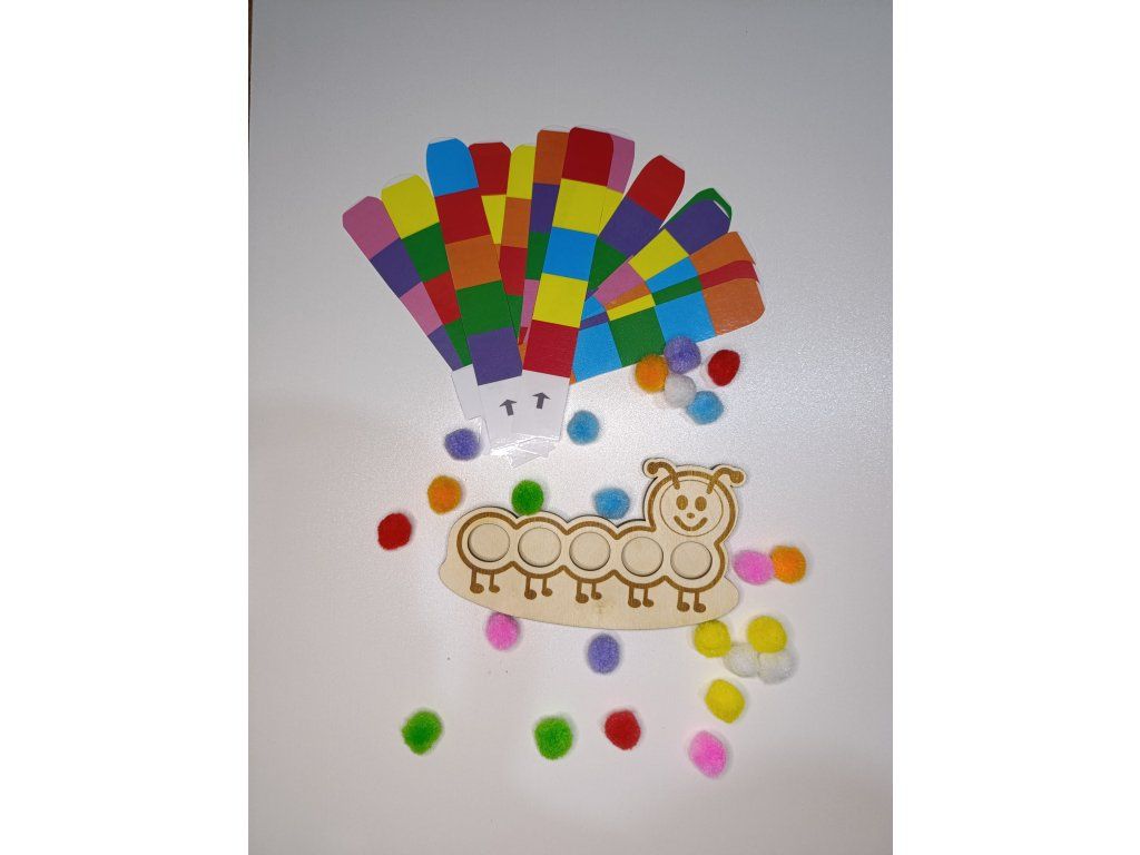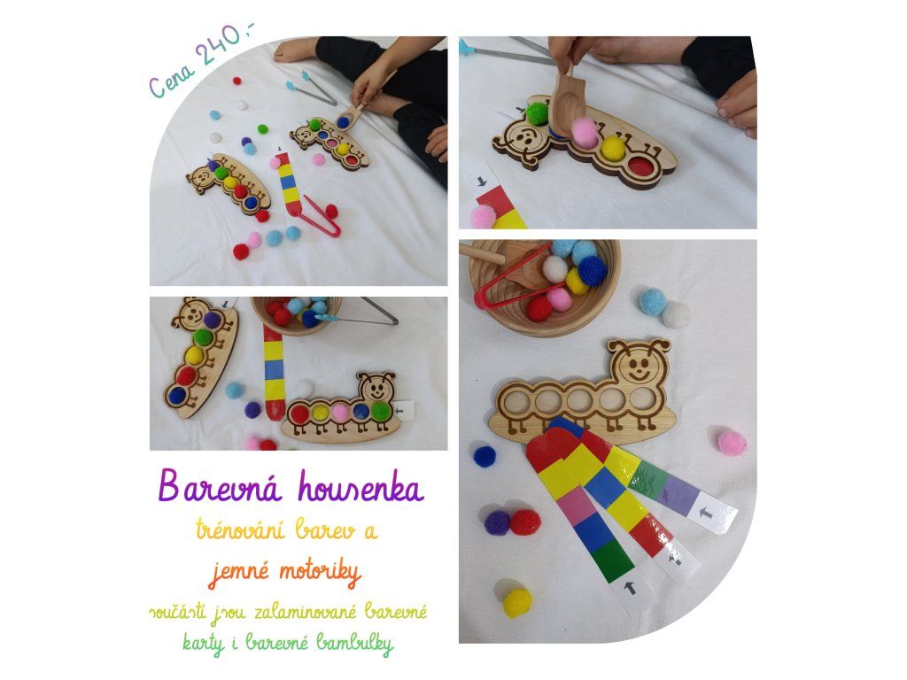 Housenka, zábavná a hravá hra co učí barvy a trénuje jemnou motoriku, samostatnost i paměť.