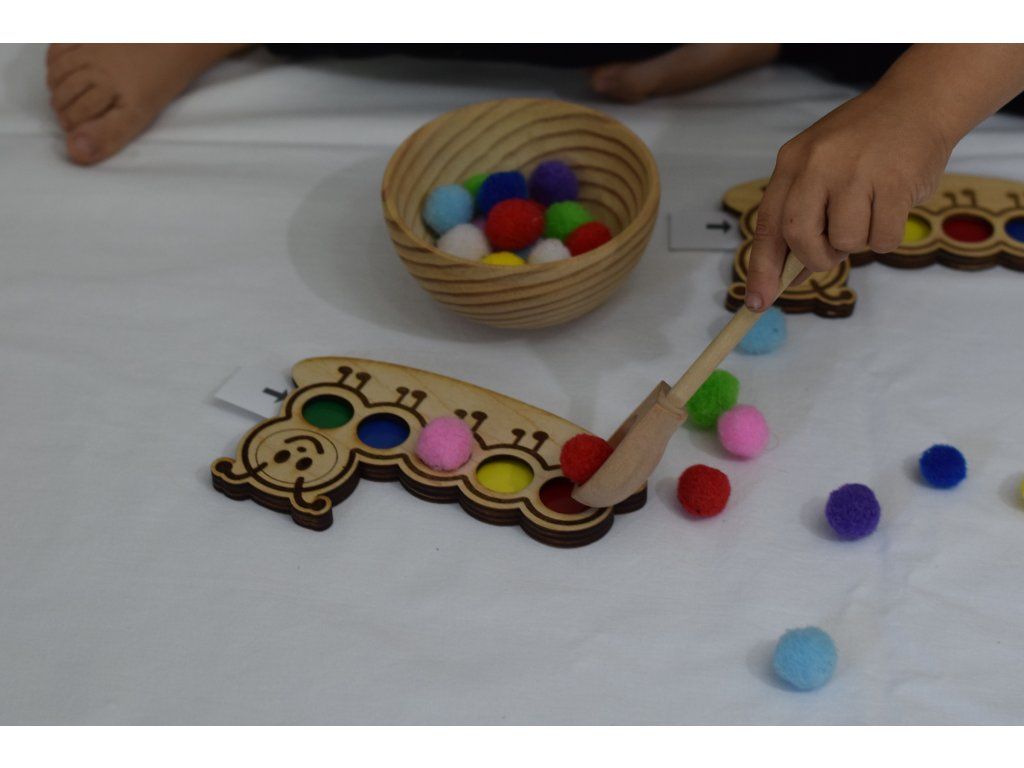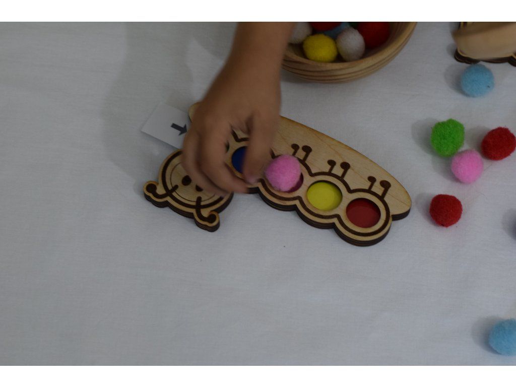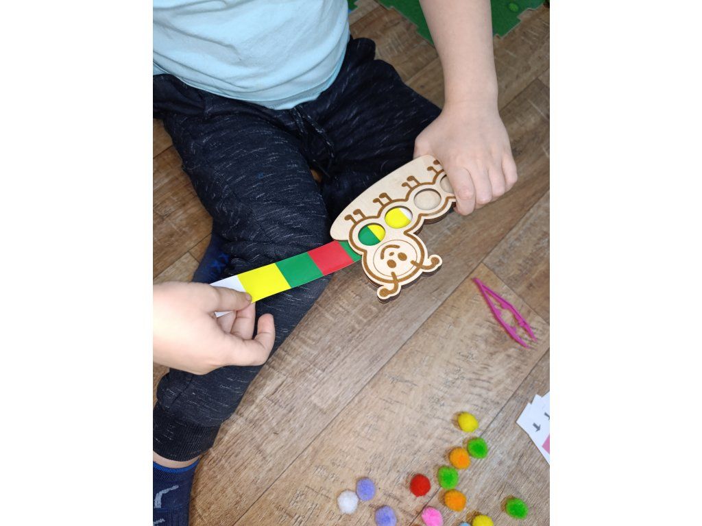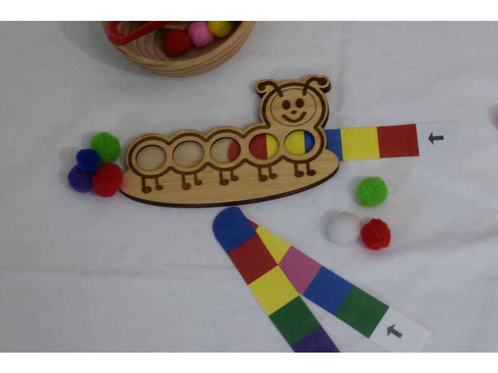 Housenka, zábavná a hravá hra co učí barvy a trénuje jemnou motoriku, samostatnost i paměť.