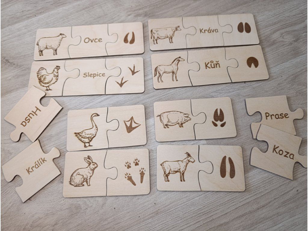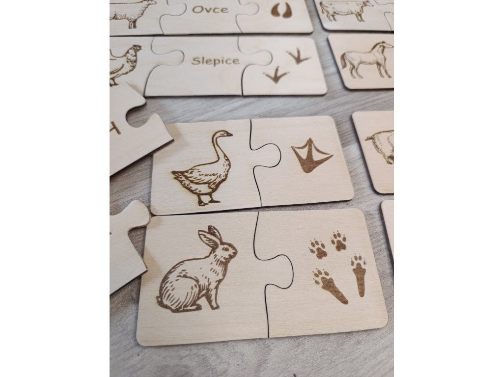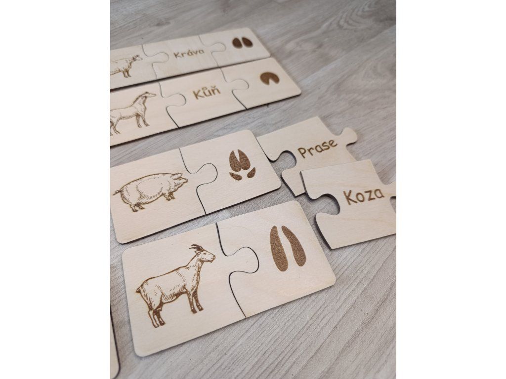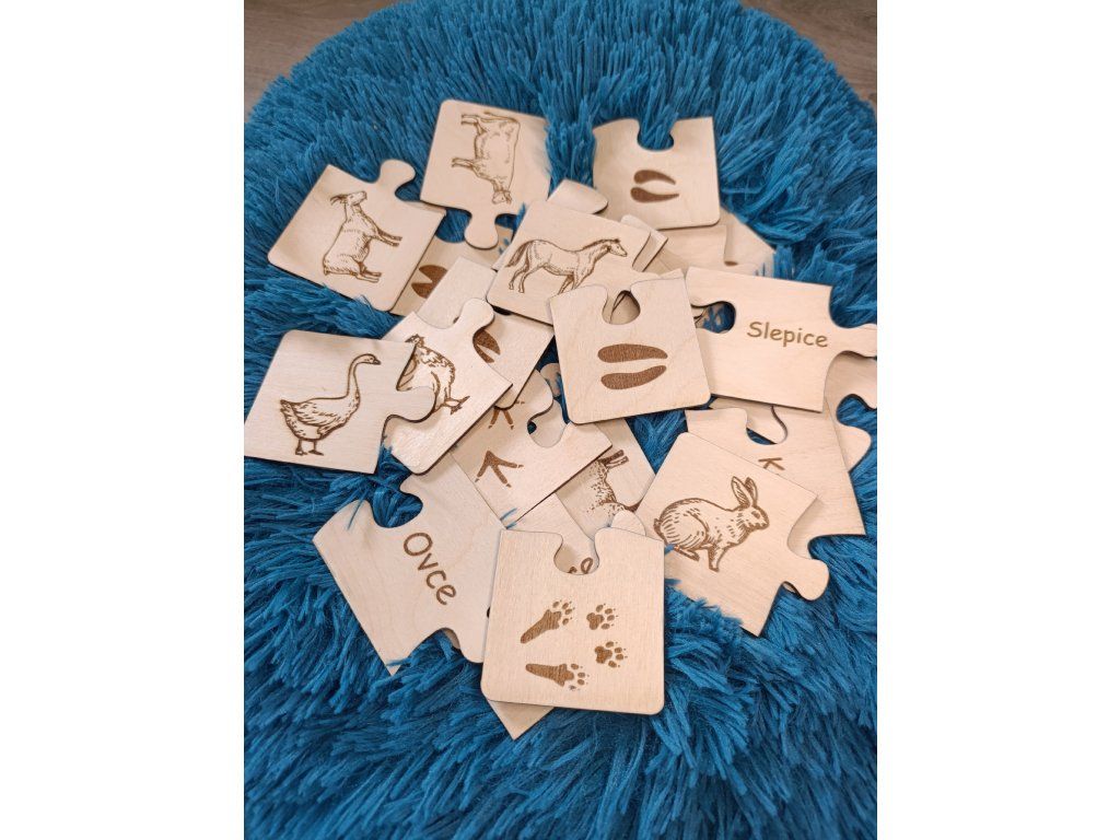 Dřevěné puzzle - stopy domácích zvířat
