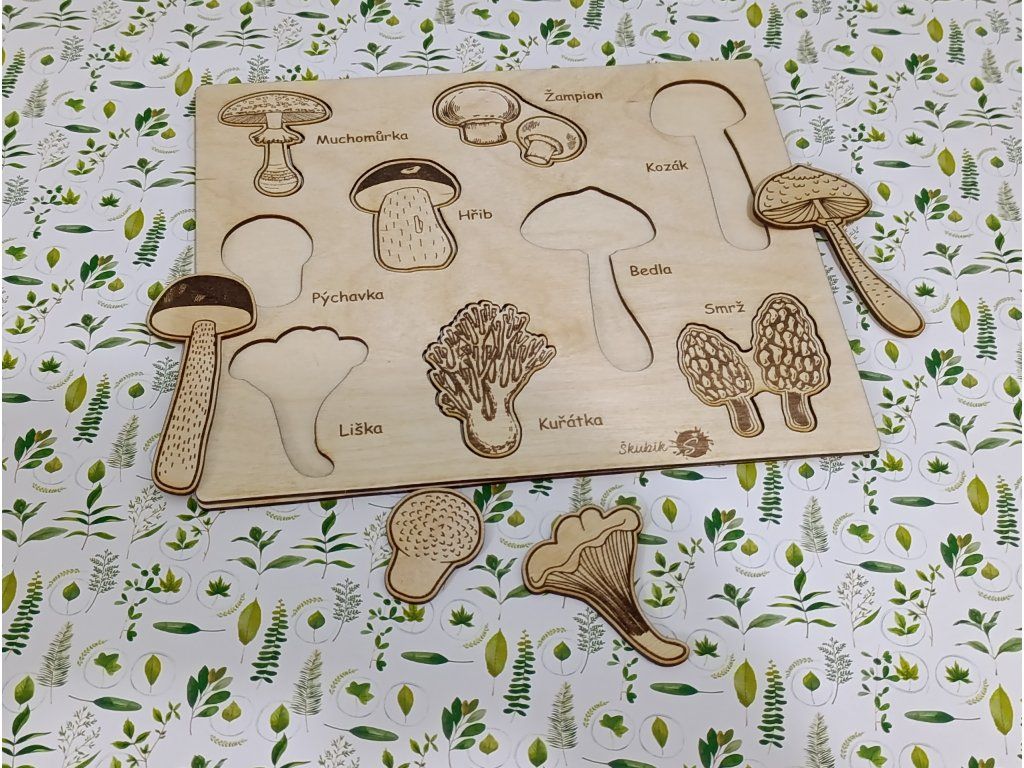 Poznejte druhy hub pomocí vkládacího puzzle.