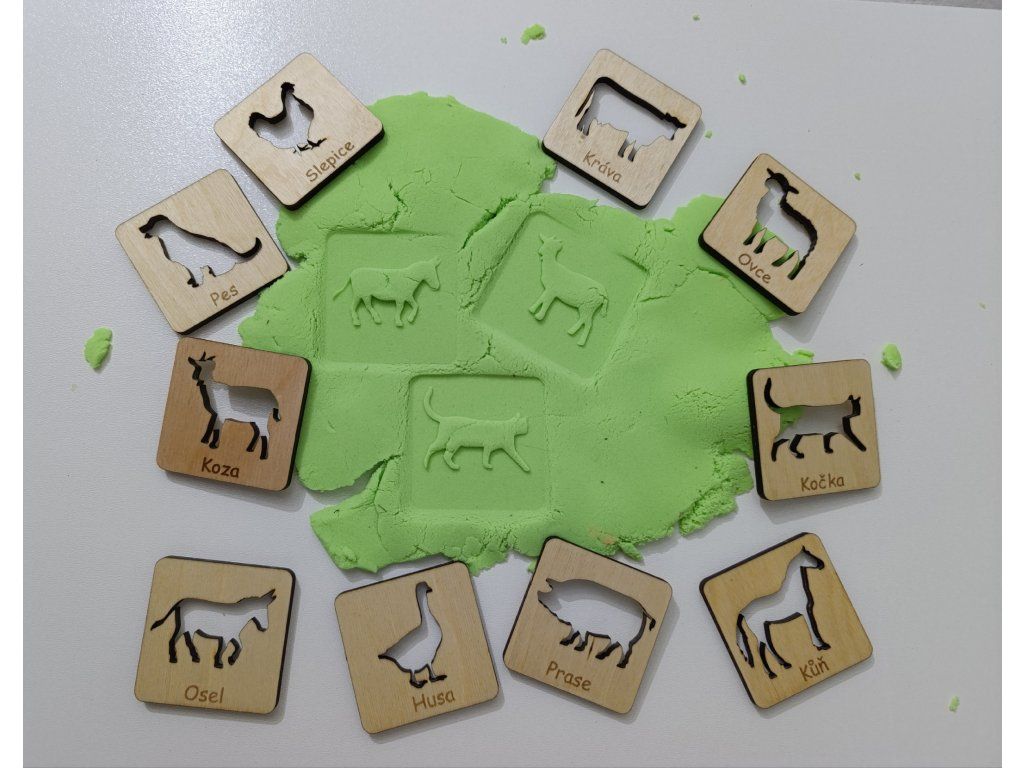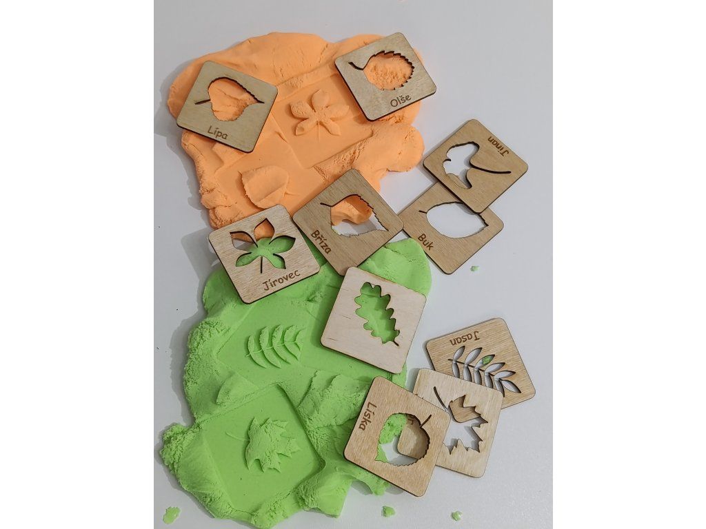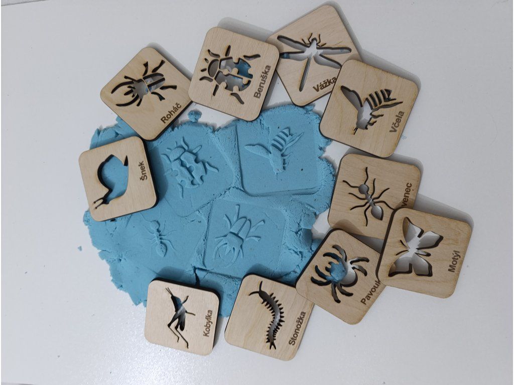 - Obtisky do kynetického písku nebo modelíny - tvořte obrázky, tvořte krajinu. Podpořte hmatové vnímání.