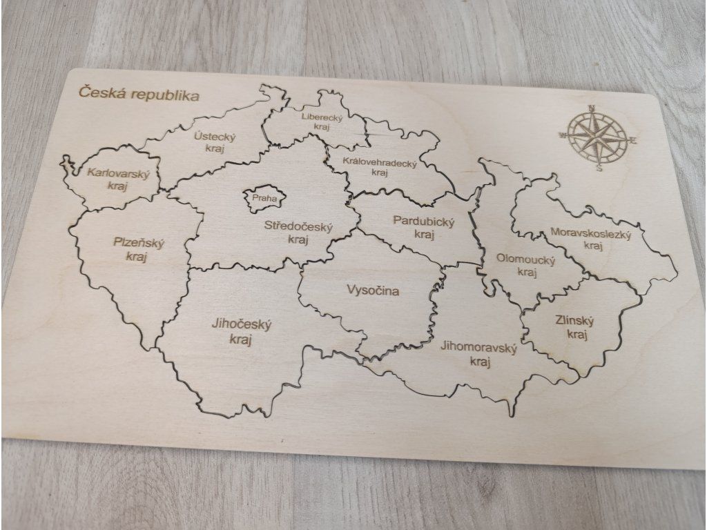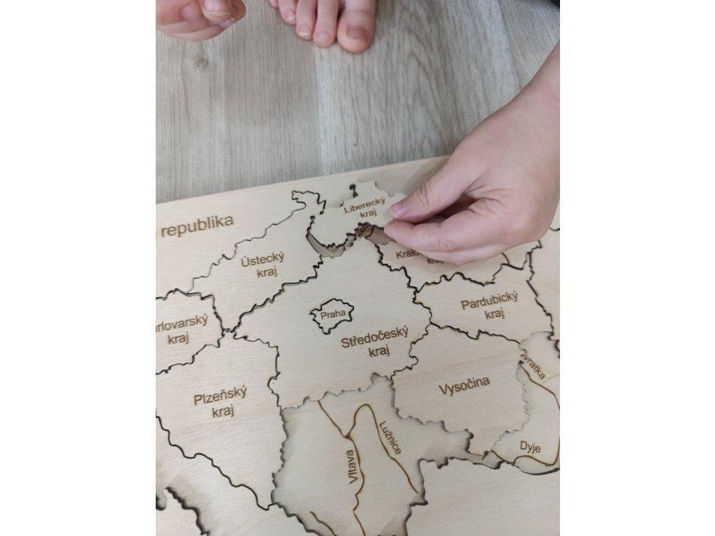 Mapa ČR - kraje a řeky - vkládací puzzle