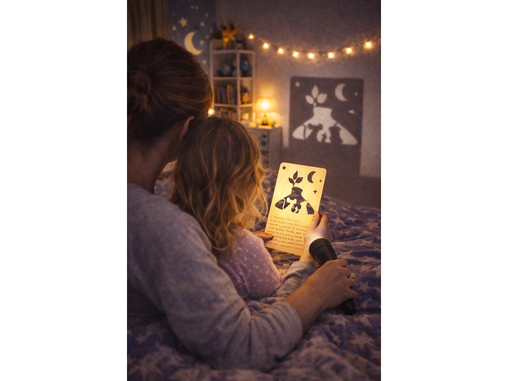 Originální dřevěné pohádky nejen na dobrou noc . Hra stínů přes celý pokojíček zaujme všechna neposedná dítka a převypráví pohádku zcela novým způsobem. Krásné, poutavé a pohádkové dobrodružství může začít.