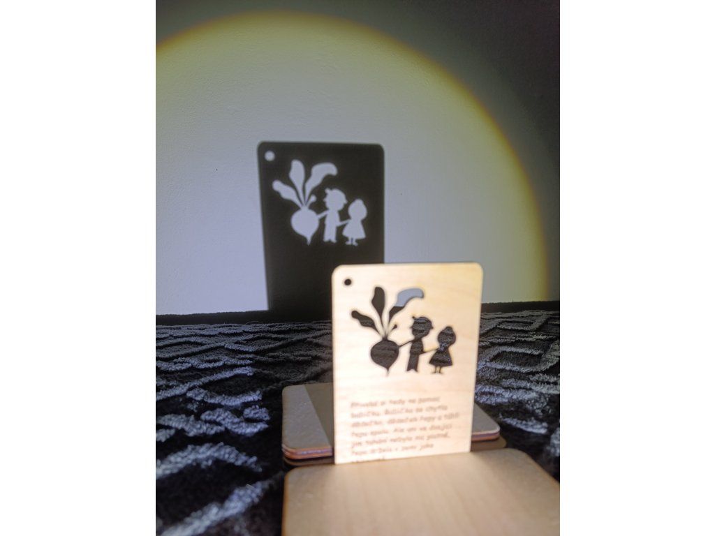 Originální dřevěné pohádky nejen na dobrou noc . Hra stínů přes celý pokojíček zaujme všechna neposedná dítka a převypráví pohádku zcela novým způsobem. Krásné, poutavé a pohádkové dobrodružství může začít.