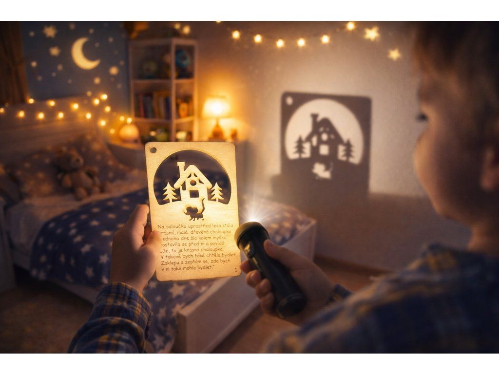 Originální dřevěné pohádky nejen na dobrou noc . Hra stínů přes celý pokojíček zaujme všechna neposedná dítka a převypráví pohádku zcela novým způsobem. Krásné, poutavé a pohádkové dobrodružství může začít.