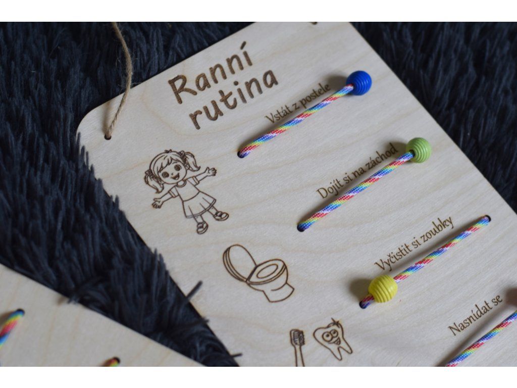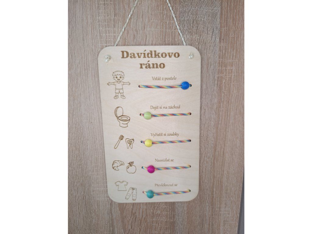 5 jednoduchých kroků = 5 korálků a dítě ví co má udělat a co už zvládnul a Vám to ráno ušetří spousty času a hlavně nervů.