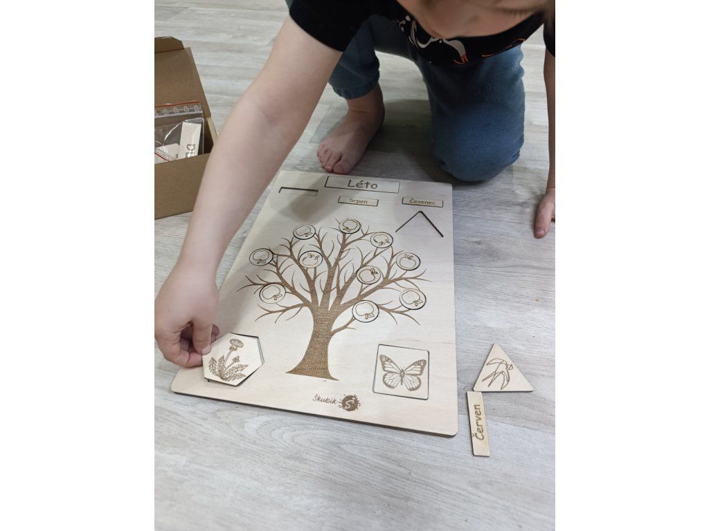 Procvičuje: Jemná motorika, Koordinace oko-ruka, vizuomotorika, smyslové vnímaní, paměť, slovní zásoba, poznání přírodních zákonitostí